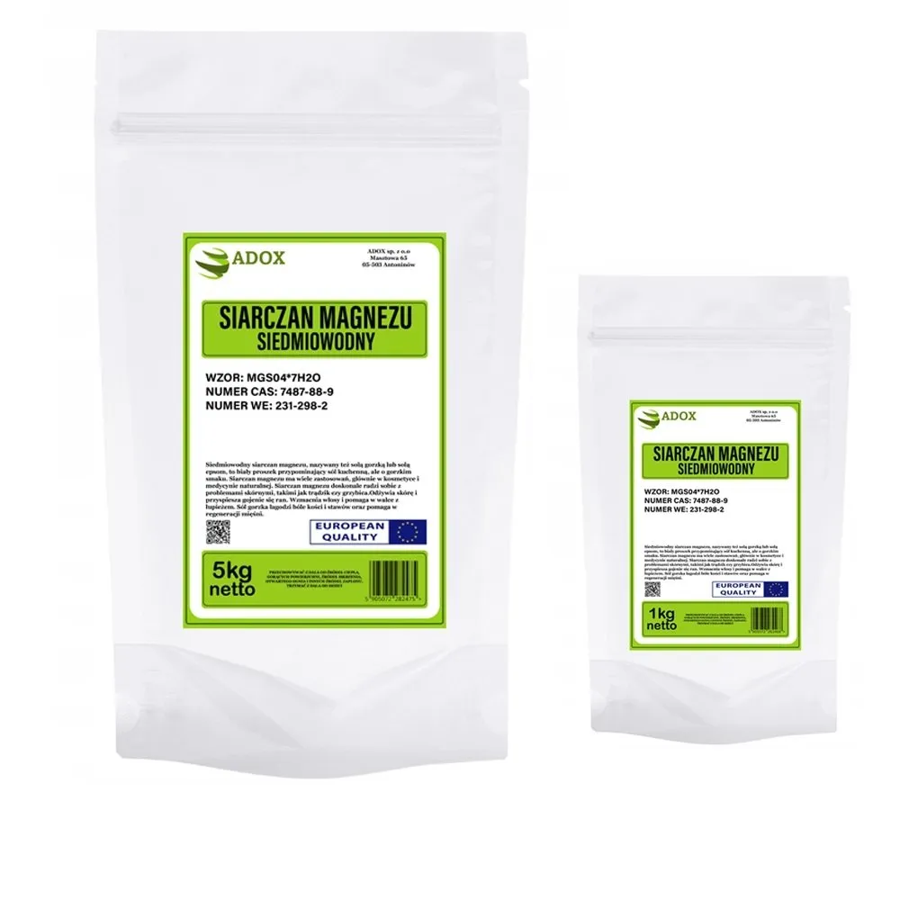 Siedmiowodny siarczan magnezu (MgSO₄·7H₂O) to związek stosowany w kosmetyce domowej, rolnictwie i laboratoriach. Produkt w formie białego proszku o wysokiej czystości.